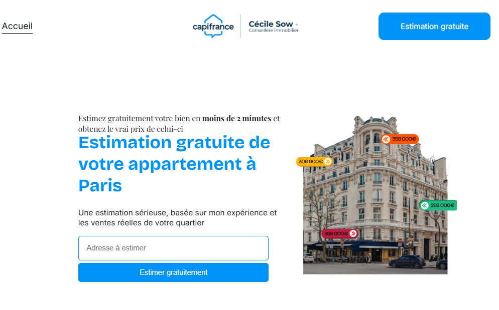 - Un tunnel d’estimation qui capte les infos des vendeurs.